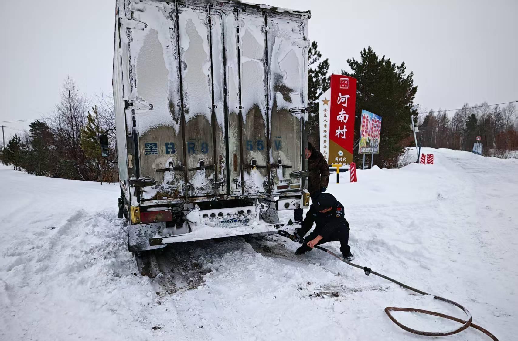 呼瑪縣公安局緊急救助被困大掛車