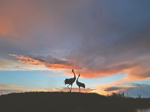 夕陽下的丹頂鶴