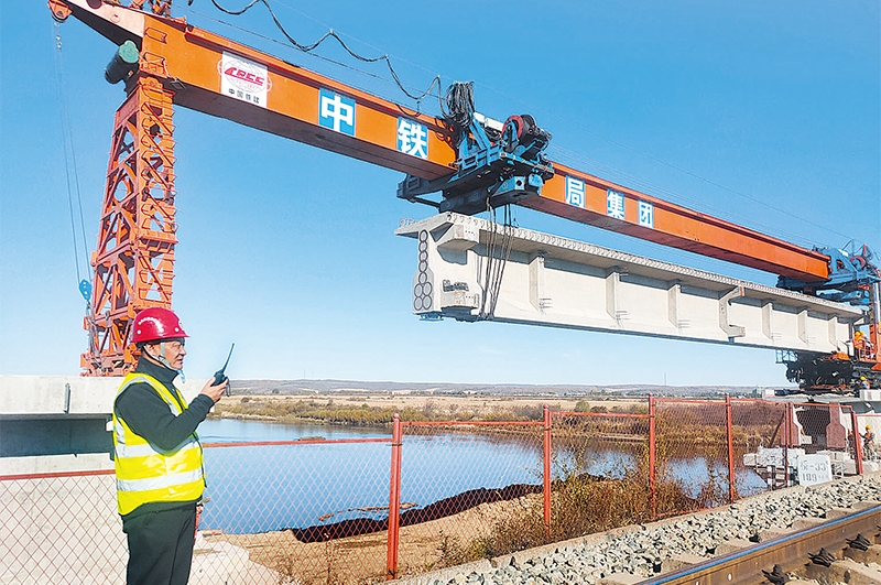 北黑鐵路升級改造工程新建遜別拉河鐵路大橋完成架梁