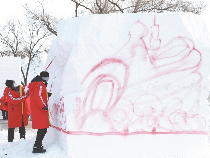 大學(xué)生雪雕比賽開鏟