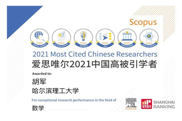 哈理工大學(xué)胡軍教授蟬聯(lián)“中國高被引學(xué)者”榜單