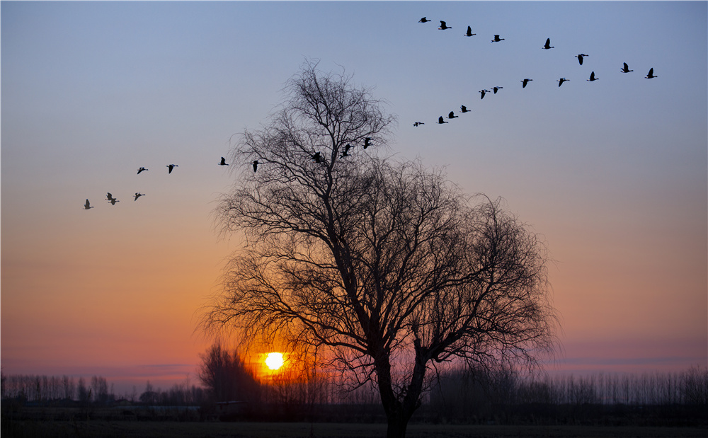 候鳥(niǎo)排開(kāi)“人字陣”