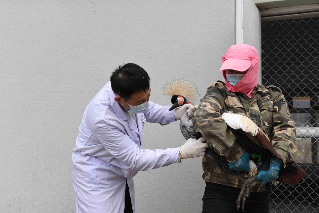 動(dòng)物醫(yī)生為園內(nèi)鳥(niǎo)類(lèi)進(jìn)行體檢