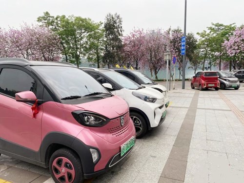 在柳州市區(qū)街道上,精致小巧的新能源汽車隨處可見?!≈転t男 攝