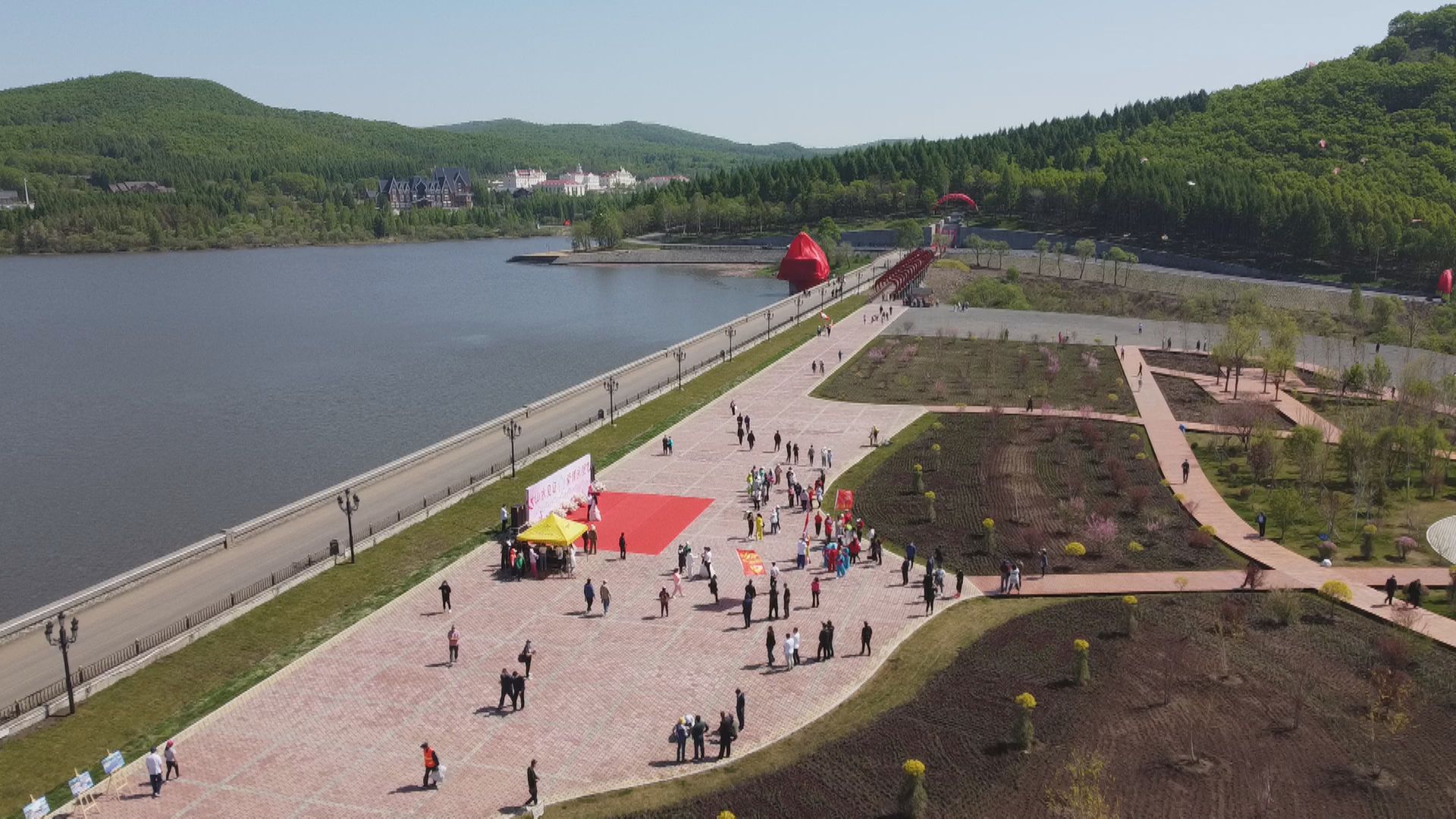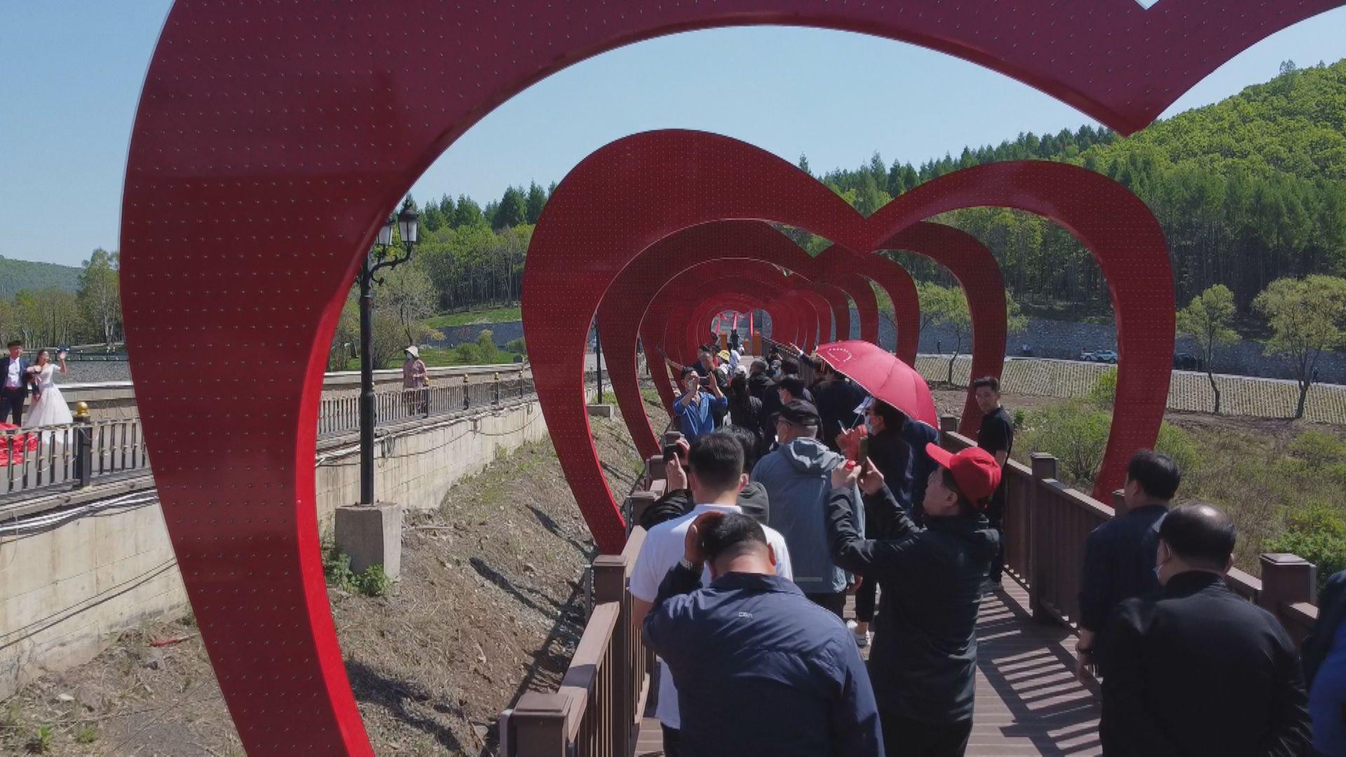 5月的邊城,清風(fēng)拂面,陽(yáng)光明媚。位于天長(zhǎng)山與地久山間的愛(ài)情谷公園湖水清澈,美景如畫(huà)。這里東經(jīng)131度,北緯44度,海拔520米,加在一起正是“一生一世我愛(ài)你”的諧音,這也是公園名字的由來(lái)。
