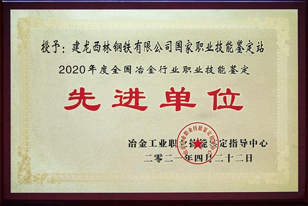 獲譽(yù)“2020年度全國(guó)冶金行業(yè)職業(yè)技能鑒定先進(jìn)單位”