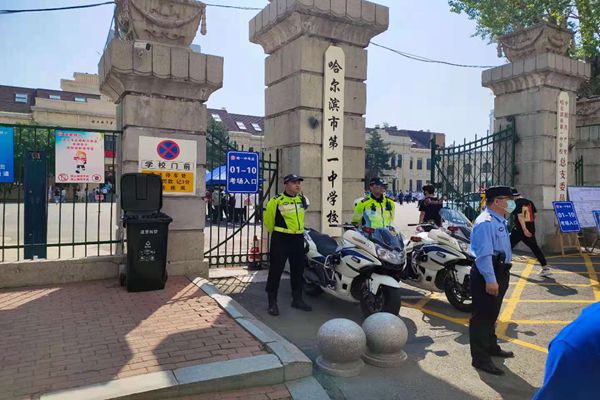 今早8點(diǎn),哈爾濱市第一中學(xué)門前雖然人頭攢動,但車減速,人低語。