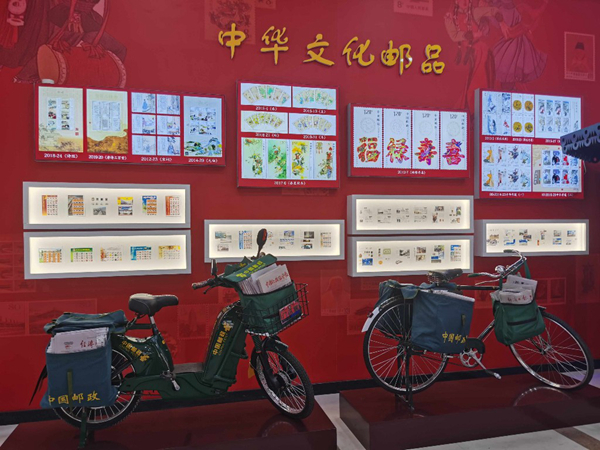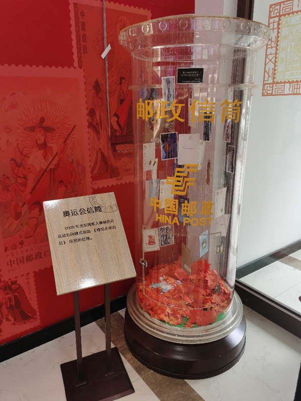 一進(jìn)門右手邊,是一個(gè)透明的郵政信筒,它來自2008年北京殘奧會閉幕式,現(xiàn)場有很多人通過它投遞出了《寄給未來的信》。左右兩側(cè)的墻上,懸掛著中華文化郵品,用郵票的形式展示傳統(tǒng)文化,重陽節(jié)、梅蘭芳舞臺藝術(shù)、景德鎮(zhèn)瓷器等具有紀(jì)念意義的郵票都位列其中,這里是集郵愛好者的天堂。