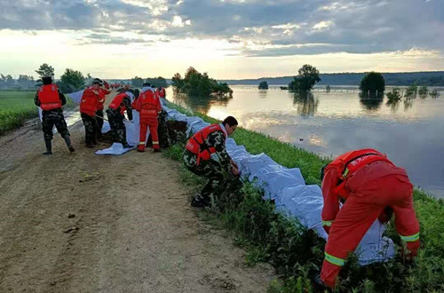圍繞民生保障,辦急事、破難題。塔河林業(yè)局黨委始終堅持以人民為中心的發(fā)展理念,時刻把人民利益擺在至高無上地位。一方有難,八方支援,按照集團公司的要求部署,塔河林業(yè)局出動人員440余人,各類車輛和機械43臺,轉戰(zhàn)塔河縣開庫康鄉(xiāng)、依西肯鄉(xiāng)、呼瑪縣鷗浦鄉(xiāng),面對復雜嚴峻的汛情洪澇形勢,林業(yè)局帶隊領導迅速做出決策部署,組建防汛救災指揮部,集結“黨員先鋒隊”。全體黨員不畏艱險、率先垂范、靠前作戰(zhàn);全體防汛救災隊員不懼洪水,不畏高溫,逆水而行,裝卸沙袋、加筑江堤、封堵管涌,經過8個晝夜的連續(xù)奮戰(zhàn),林業(yè)局防汛救災隊安全、圓滿地完成了防汛救災各項任務,以實際行動詮釋了“救民于水火、助民于危難”的使命擔當。