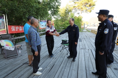在與游客的交談中,姜明君向游客介紹了漠河市的風(fēng)土人情,了解他們對景區(qū)管理、旅游開發(fā)規(guī)劃、旅游產(chǎn)品等方面的建議,征求他們對公安民警在護(hù)游、便民服務(wù)及正在開展的“平安之夏”大會戰(zhàn)等方面的意見,同時向游客宣傳防電信詐騙知識,指導(dǎo)他們下載安裝“國家反詐中心”APP,提高安全防范意識,避免上當(dāng)受騙。
