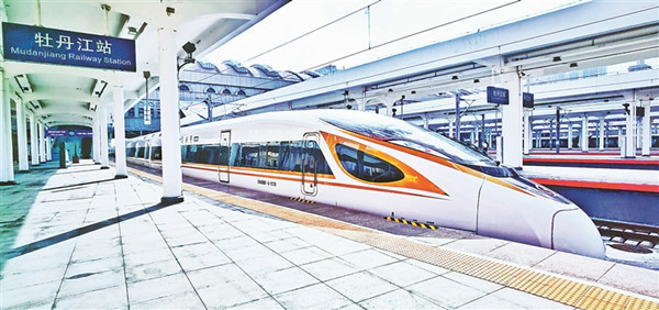 復(fù)興號高寒動車組首次??吭谀档そ?。黑龍江日報全媒體記者 邵國良攝