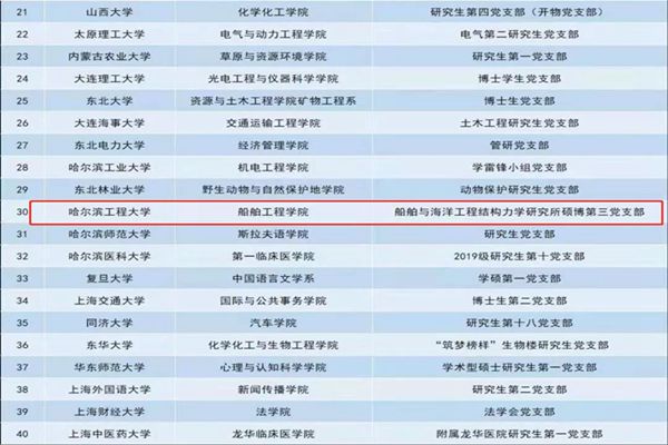 黑龍江經(jīng)濟(jì)網(wǎng)訊(全媒體見習(xí)記者 董廣碩 商祺)近日,教育部公布第二批全國(guó)高?!鞍賯€(gè)研究生樣板黨支部”和“百名研究生黨員標(biāo)兵”單位名單,哈爾濱工程大學(xué)船舶學(xué)院船舶與海洋工程結(jié)構(gòu)力學(xué)研究所碩博第三黨支部,以及智能學(xué)院博士研究生李明非榜上有名!