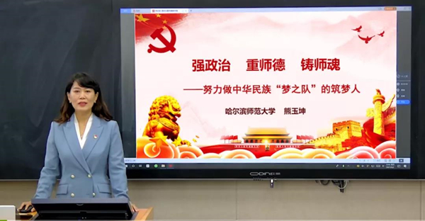 據(jù)了解,本次活動(dòng)是黑龍江省教育廳慶祝第37個(gè)教師節(jié)的系列活動(dòng)之一,由哈爾濱師范大學(xué)協(xié)辦、全國中小學(xué)繼續(xù)教育網(wǎng)技術(shù)支持舉辦?;顒?dòng)以“賡續(xù)百年初心,擔(dān)當(dāng)育人使命”為主題,由哈爾濱師范大學(xué)馬克思主義學(xué)院熊玉坤副教授講授題為《強(qiáng)政治、重師德、鑄師魂——努力做中華民族“夢之隊(duì)”的筑夢人》的思政課。課程圍繞提升教師思想政治素質(zhì)和師德水平、更好擔(dān)負(fù)起立德樹人根本任務(wù)展開,分為新時(shí)代加強(qiáng)和改進(jìn)師德師風(fēng)建設(shè)的政治要求、新時(shí)代師德師風(fēng)建設(shè)的豐富內(nèi)涵、新時(shí)代強(qiáng)化師德師風(fēng)建設(shè)的對策思考三個(gè)部分,系統(tǒng)回答了新時(shí)代中小學(xué)教師思想政治和師德師風(fēng)建設(shè)為什么、是什么、怎么做的問題。