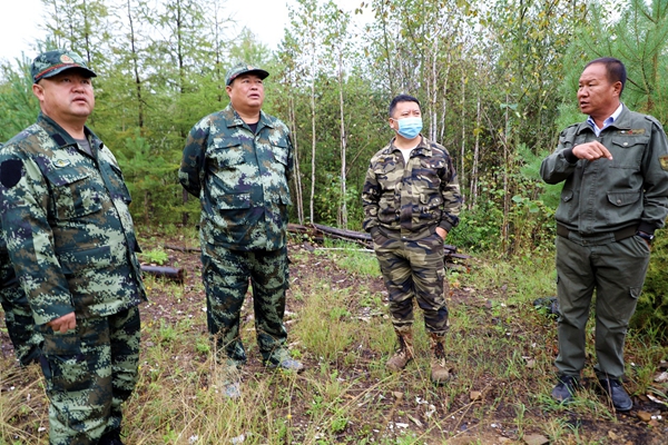 林業(yè)局黨委書記胡守慶(左二)深入檢查指導改造管護站安全施工工作。