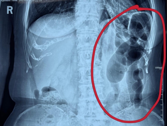 據(jù)省醫(yī)院消化病院消化二科姜子曄醫(yī)生介紹,韓大娘今年已經(jīng)73歲,家住哈爾濱市,一周前開(kāi)始腹脹腹痛,有較為明顯的左側(cè)腹部疼痛,疼痛劇烈時(shí)會(huì)出現(xiàn)左側(cè)腹部鼓包情況,排氣排便后有所好轉(zhuǎn)。韓大娘家人見(jiàn)狀將其送到了黑龍江省醫(yī)院,門(mén)診檢查腹部平片提示為左側(cè)腹部積氣,口服全消化動(dòng)力藥及通便治療后腹痛腹脹有所緩解,入院前再次突發(fā)左側(cè)腹痛加重伴有明顯腹脹,急診隨后以“腹痛腹脹原因待查”將韓大娘收入到消化病院消化二科。