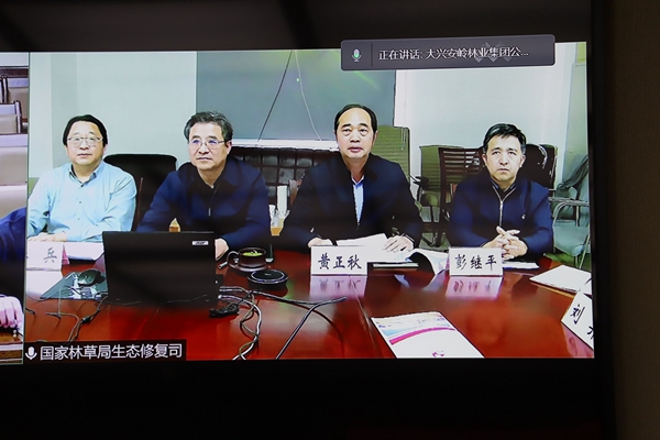 簽約儀式以視頻的形式召開。生態(tài)司司長、司支部書記張煒,副司長(正司局級)、司支部副書記黃正秋,生態(tài)司二級巡視員、司支委組織委員潘兵,綜合處處長、一級調(diào)研員彭繼平,森林城市處處長、一級調(diào)研員、司支委紀檢委員楊春,生態(tài)處副處長、三級調(diào)研員、司支委學(xué)習(xí)委員劉羿,在國家林草局主樓501房間,集團公司黨委常委、副總經(jīng)理劉志,集團公司生態(tài)修復(fù)管理處處長劉繼明,集團公司黨委老干部處(組織部副處長)范學(xué)利,阿木爾林業(yè)局黨委書記胡守慶,阿木爾林業(yè)局黨委副書記、局長韓鳳泉,阿木爾林業(yè)局黨委副書記呂光鑫,阿木爾林業(yè)局黨委委員、組織部部長王立昆在大興安嶺林業(yè)集團公司視頻會議室,參加了會議。
