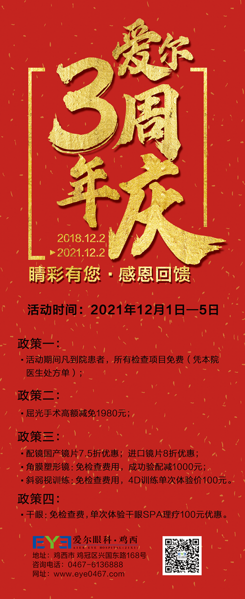 2021年的12月2日,雞西愛(ài)爾眼科醫(yī)院迎來(lái)了他三周歲生日。