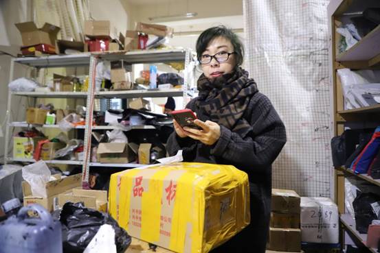 阿木爾林業(yè)局網(wǎng)商孫秀麗在快遞點為客戶準備發(fā)貨(王力 攝)