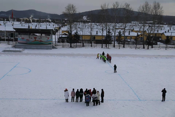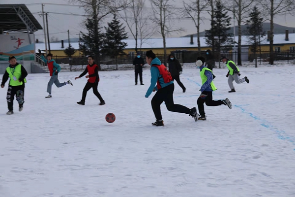 組織開展雪地足球比賽。作為學(xué)校的傳統(tǒng)特色項目,雪地足球的比賽成為全校的焦點。精心繪制的雪地足球場,為同學(xué)們提供了獨具興安特色的足球樂園。