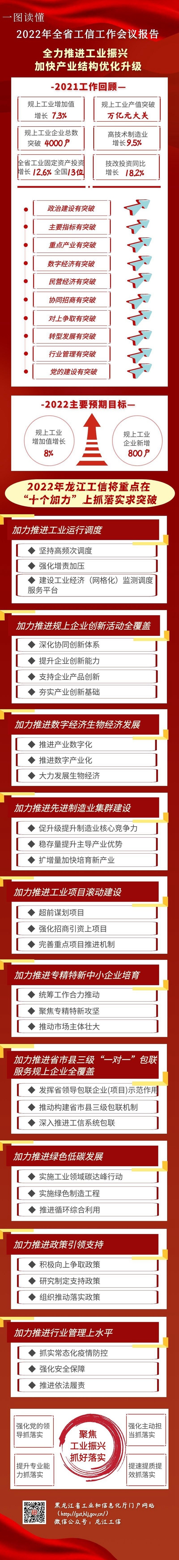 會議強(qiáng)調(diào),新的一年,要堅持以習(xí)近平新時代中國特色社會主義思想為指導(dǎo),全面貫徹落實(shí)黨的十九大和十九屆歷次全會精神,深入貫徹落實(shí)習(xí)近平總書記重要講話重要指示批示精神,按照黨中央“提升制造業(yè)核心競爭力”和省委“要把振興工業(yè)擺上突出位置”的部署要求,完整、準(zhǔn)確、全面貫徹新發(fā)展理念,服務(wù)和融入構(gòu)建新發(fā)展格局,推動高質(zhì)量發(fā)展,堅持思想思路破題、科學(xué)規(guī)劃引領(lǐng)、配套政策跟進(jìn)、聚焦優(yōu)勢揚(yáng)長、激發(fā)活力補(bǔ)短,“穩(wěn)”字當(dāng)頭、“進(jìn)”字發(fā)力,全力實(shí)施工業(yè)振興計劃,以發(fā)展壯大數(shù)字經(jīng)濟(jì)、生物經(jīng)濟(jì)等戰(zhàn)略性新興產(chǎn)業(yè)為引領(lǐng),“十個加力”穩(wěn)存量擴(kuò)增量,鞏固實(shí)體經(jīng)濟(jì)根基,做強(qiáng)先進(jìn)制造業(yè),做優(yōu)現(xiàn)代產(chǎn)業(yè)體系,推動工業(yè)經(jīng)濟(jì)實(shí)現(xiàn)質(zhì)的穩(wěn)步提升和量的合理增長,加快龍江工業(yè)再創(chuàng)新輝煌,以優(yōu)異成績迎接黨的二十大勝利召開。