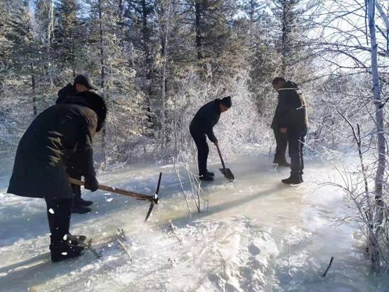 圖為新林林業(yè)局組織人員對營林撫育生產(chǎn)結(jié)冰道路進行清理(崔紅霞 攝)
