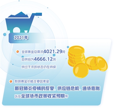 方正中期期貨有限公司貴金屬研究員史家亮認(rèn)為,2021年,全球黃金總需求4021.29噸,總供給為4666.12噸,供過于求的狀態(tài)仍在持續(xù)。不過,黃金價(jià)格并沒有持續(xù)大幅回落,主因在于黃金的商品屬性對(duì)價(jià)格的影響仍在弱化,黃金的債券屬性和貨幣屬性是黃金價(jià)格走勢(shì)的核心影響因素,而這又與美聯(lián)儲(chǔ)貨幣政策走勢(shì)密切相關(guān)。