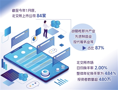 2021年11月15日,北京證券交易所正式揭牌開(kāi)市,截至目前已滿(mǎn)3個(gè)月。記者日前獲悉,截至2022年1月底,北交所上市公司84家,戰(zhàn)略性新興產(chǎn)業(yè)、先進(jìn)制造業(yè)、現(xiàn)代服務(wù)業(yè)等占比87%;新三板創(chuàng)新層掛牌公司1221家、基礎(chǔ)層掛牌公司5694家,呈現(xiàn)出“金字塔”結(jié)構(gòu)。目前,符合北交所上市財(cái)務(wù)條件的掛牌公司超過(guò)千家。