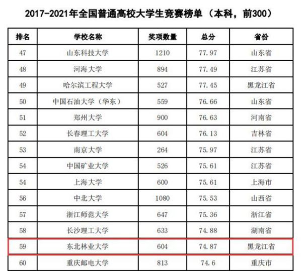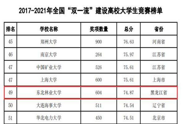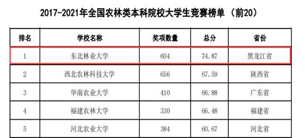 東北林業(yè)大學連續(xù)四年蟬聯(lián)全國農(nóng)林類本科院校大學生競賽排行榜榜首