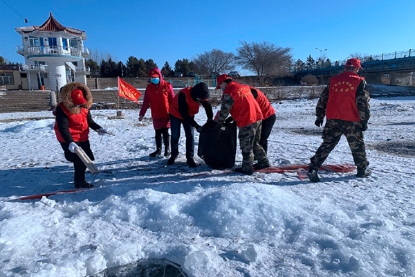 活動(dòng)中,森調(diào)隊(duì)15名志愿者們身著志愿者紅馬甲,手拎垃圾袋,走在濕地兩側(cè)一邊互相提醒,一邊認(rèn)真地?fù)焓坝慰蛠G棄在濕地周邊的礦泉水瓶、煙蒂、碎紙屑、塑料袋等生活垃圾。由于氣溫轉(zhuǎn)暖,冰面濕滑,給清理垃圾工作帶來(lái)一定難度,志愿者們克服困難,利用一個(gè)多小時(shí)的時(shí)間,還濕地周邊一片干凈、整潔的環(huán)境。