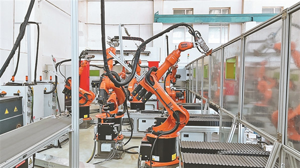 齊齊哈爾黑龍國際冰雪裝備有限公司生產(chǎn)車間,焊接機(jī)器人大幅度提高生產(chǎn)效率。