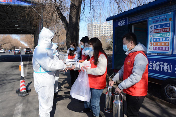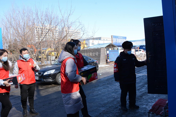 樺川縣稅務局組成青年志愿服務隊,攜帶保溫杯、熱水、水果等慰問品,深入樺川縣入口防疫卡點,慰問堅守在疫情防控一線的工作人員。青年志愿者們詳細詢問卡點防寒保暖、飲食安排等情況,對他們舍小家為大家、無私奉獻、敢于擔當?shù)木窠o予高度贊揚,向他們送去關(guān)心和問候,叮囑他們做好自身防護,合理安排休息時間。