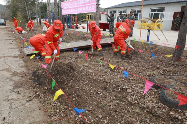 開設防火隔離帶,是阻擋火源的有效方法。依東林場將環(huán)境衛(wèi)生整治與防火科目結合起來,在門前擺下擂臺,拉出橫線設立分區(qū),六組隊員進入場地爭分奪秒、互不相讓,有的耙、有的裝,一會功夫一條干凈、規(guī)范的“隔離帶”出現(xiàn)在眼前。
