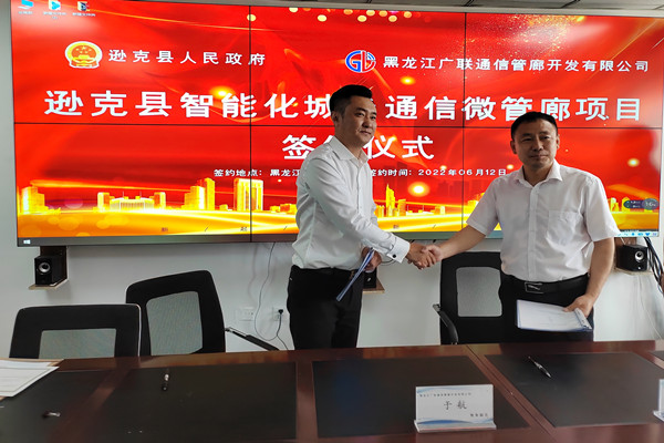 黑龍江經濟網訊(黑龍江日報全媒體見習記者商祺)6月12日,黑龍江廣聯(lián)通信管廊開發(fā)有限公司與遜克縣人民政府在哈爾濱市常青大廈舉行遜克縣智能化城鄉(xiāng)通信微管廊項目簽約儀式。