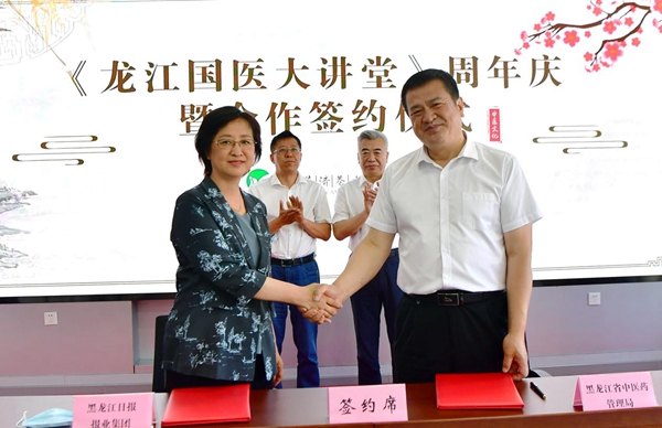 活動(dòng)現(xiàn)場(chǎng),黑龍江日?qǐng)?bào)報(bào)業(yè)集團(tuán)分別與黑龍江省中醫(yī)藥管理局、黑龍江省中醫(yī)藥科學(xué)院進(jìn)行了合作簽約。省中醫(yī)藥管理局黨組書(shū)記、局長(zhǎng)張曉峰說(shuō):黑龍江日?qǐng)?bào)報(bào)業(yè)集團(tuán)具有廣泛的社會(huì)影響力,我們將以框架協(xié)議的簽署為契機(jī),在中醫(yī)藥文化知識(shí)宣傳普及、中醫(yī)藥產(chǎn)業(yè)宣傳推介方面進(jìn)一步加深合作。省中醫(yī)藥科學(xué)院黨委書(shū)記、院長(zhǎng)陳宏在現(xiàn)場(chǎng)說(shuō):《龍江國(guó)醫(yī)大講堂》已成為我省中醫(yī)藥文化宣傳戰(zhàn)線上的知名品牌,我們將在多領(lǐng)域開(kāi)展更深層次、更高水平的合作,為我省中醫(yī)藥事業(yè)跨越式發(fā)展助推加力。