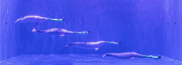 2009年,哈爾濱極地公園首推極地白鯨水下表演,歷時13年的時間,“來哈爾濱·看白鯨表演”已經(jīng)成為全國游客心馳神往的旅游節(jié)目,而表演中經(jīng)典的“海洋之心”不僅獲得了原創(chuàng)版權,也成為了哈爾濱一張具有浪漫色彩的文旅名片,獲得國內、國際主流媒體持續(xù)十余年的關注。2021年5月,三只可愛的極地白鯨創(chuàng)造的“三鯨開泰”首次亮相;現(xiàn)在,哈爾濱極地公園的白鯨家族推出“四鯨巡游”、“四鯨祈?!钡雀唠y度表演,再一次創(chuàng)造了經(jīng)典。