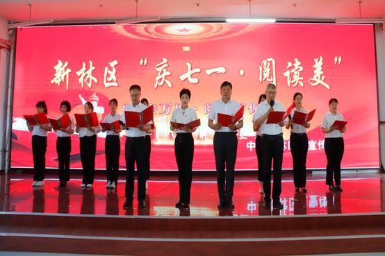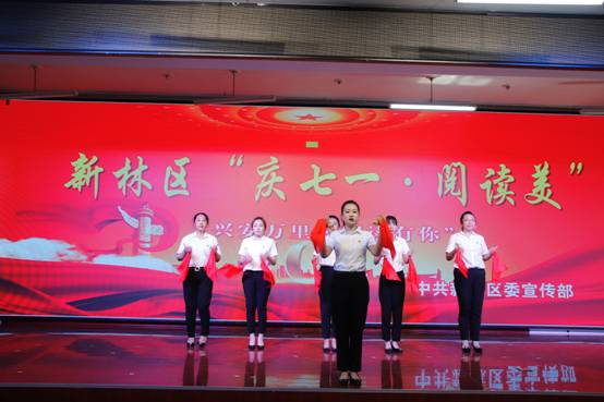 最后,由新林區(qū)處級領(lǐng)導(dǎo)干部帶來的詩朗誦《黨旗飄飄》,以激蕩澎湃的深情頌讀,展示了從空間到時(shí)間、從歷史到當(dāng)前的壯闊畫面,抒發(fā)了心中對黨、對祖國的無限熱戀,表達(dá)了永遠(yuǎn)追隨這面光榮旗幟的錚錚誓言和堅(jiān)定決心。聽得在場人員心潮澎湃,感慨萬千。新林區(qū)將繼續(xù)拓展“興安萬里·閱讀有你”全民閱讀活動,讓越來越多新林人愛上閱讀,為新林區(qū)轉(zhuǎn)型振興發(fā)展增添強(qiáng)大精神動力,以新林努力、新林有為、新林貢獻(xiàn)的優(yōu)異成績迎接黨的二十大勝利召開。