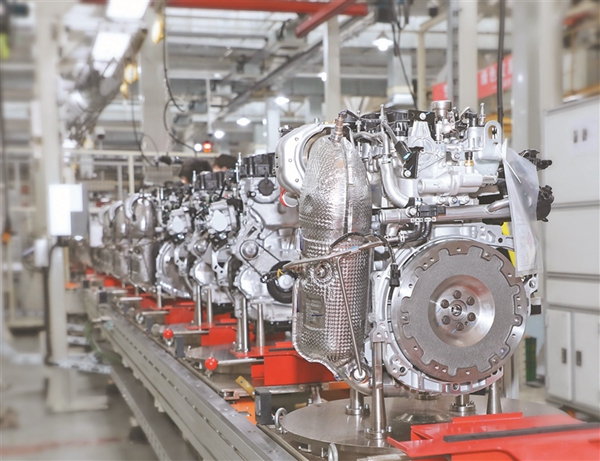 一臺(tái)臺(tái)發(fā)動(dòng)機(jī)流轉(zhuǎn)于生產(chǎn)線。黑龍江日?qǐng)?bào)全媒體記者 劉莉攝