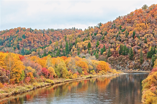 23日,農(nóng)歷傳統(tǒng)節(jié)氣秋分,火紅的楓葉、蒼翠的松枝、銀白的瀑布……陣陣秋風把山林染成了五彩繽紛的顏色,美不勝收。在沾河林區(qū),登上瞭望臺,滿眼秋色盡收眼底。黑龍江日報見習記者 張春雷攝