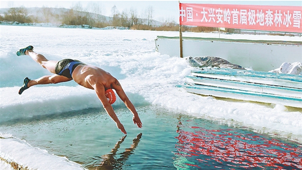 一躍而起,縱身入冰河,劈波斬浪,挑戰(zhàn)極限自我。14日,大興安嶺加格達(dá)奇區(qū)甘河冬泳基地,北極熊冬泳隊的隊員們進(jìn)行了一場精彩至極的冬泳表演賽。