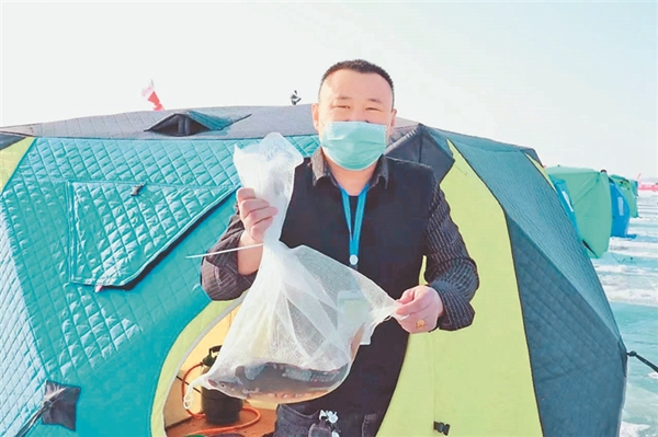 比賽現(xiàn)場,冰面上色彩各異的帳篷錯落排開,來自我省東部地區(qū)多個地市的70名釣魚愛好者聚集在此,感受垂釣魅力。當(dāng)日室外最低溫度零下20℃,而冰釣帳篷內(nèi)卻是熱氣騰騰。選手們用小火爐取暖,調(diào)料、打窩,各展技藝,不一會兒都收獲頗豐。