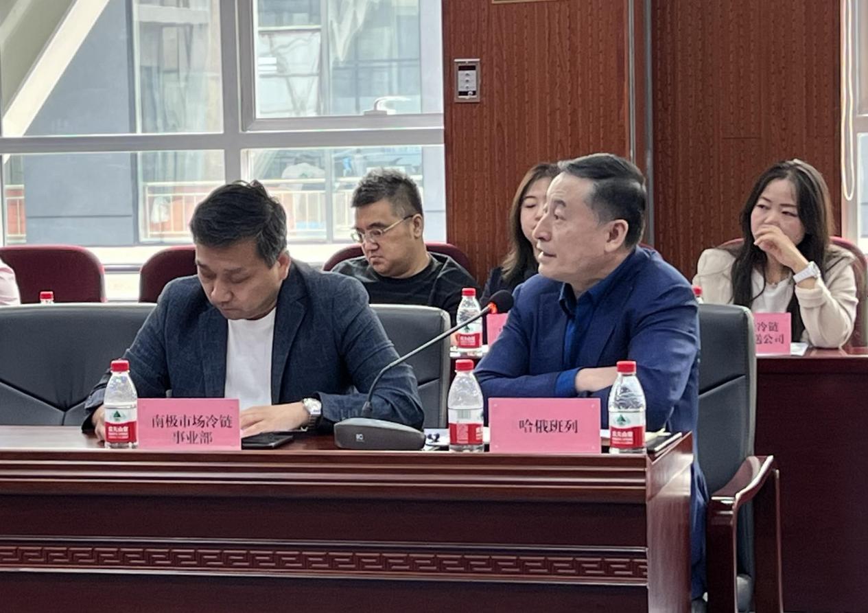 會上,哈俄班列運(yùn)營公司總經(jīng)理樊繼忠介紹了哈俄班列冷鏈項(xiàng)目現(xiàn)狀及發(fā)展思路;冰城海關(guān)駐香坊辦事處、市商務(wù)局對俄貿(mào)易處、哈綜保區(qū)管委會、哈爾濱銀行等相關(guān)負(fù)責(zé)人分別就冷鏈海鮮進(jìn)口報(bào)關(guān)查驗(yàn)情況、俄羅斯冷凍海鮮陸運(yùn)物流解決方案、發(fā)展冷鏈業(yè)務(wù)基礎(chǔ)設(shè)施條件及相關(guān)政策、冷鏈物流倉儲加工優(yōu)勢、國際結(jié)算情況等問題進(jìn)行詳細(xì)介紹,并現(xiàn)場為參會企業(yè)答疑解惑。
