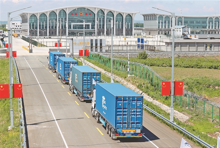“黑河經(jīng)驗(yàn)”碩果累累——跨境運(yùn)輸車輛“一站通”綜合查驗(yàn)管控新模式,有效解決了進(jìn)出境運(yùn)輸企業(yè)辦理車輛注冊(cè)備案時(shí)存在的堵點(diǎn);創(chuàng)新自走機(jī)械通關(guān)新模式,為口岸通關(guān)提供了可復(fù)制可推廣的“黑河樣板”;創(chuàng)新合作模式,打造形成規(guī)劃統(tǒng)籌、產(chǎn)業(yè)互動(dòng)、政策銜接、利益共享的協(xié)同發(fā)展機(jī)制,共同推進(jìn)跨境集群建設(shè),取得重大進(jìn)展;利用跨境電商海外倉、邊境倉、中繼倉、前置倉,通過數(shù)據(jù)集成、貨物集運(yùn),實(shí)現(xiàn)多倉聯(lián)動(dòng),打通了“一帶一路”沿線國家進(jìn)出口雙向貨運(yùn)物流便捷通道,運(yùn)輸時(shí)間縮短、物流成本降低、貨物快速運(yùn)達(dá),提高了跨境運(yùn)輸效率……首創(chuàng)推出典型案例137項(xiàng),其中40項(xiàng)獲評(píng)全省優(yōu)秀案例,形成了一批可復(fù)制可推廣的“黑河案例”。