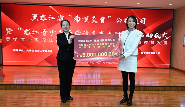 心系龍江留守兒童成長(zhǎng),百萬(wàn)愛(ài)心助力“希望美育”。儀式上,孞學(xué)漟(深圳)教育科技有限公司向“希望工程素質(zhì)提升計(jì)劃”捐贈(zèng)價(jià)值500萬(wàn)元美育融合課程,成為黑龍江省“希望美育”公益項(xiàng)目的首筆捐贈(zèng),黑龍江省希望工程捐助中心、黑龍江省青少年發(fā)展基金會(huì)與深圳市孞學(xué)漟教育科技有限公司將共同打造“龍江青少年孞學(xué)漟美育大講堂”系列公益課程。項(xiàng)目旨在為廣大鄉(xiāng)村美術(shù)教師與學(xué)生提供更為直觀和便捷的專業(yè)化美術(shù)指導(dǎo),提升學(xué)生對(duì)美的認(rèn)知和感受能力,培養(yǎng)學(xué)生的創(chuàng)造力和想象力,幫助鄉(xiāng)村青少年陶冶高尚情操、塑造美好心靈,實(shí)現(xiàn)全面發(fā)展。此次合作將連續(xù)實(shí)施5年,助力萬(wàn)名龍江學(xué)子“發(fā)現(xiàn)生活中的美”。