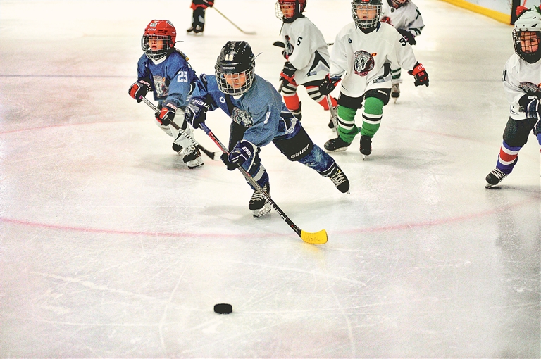 本報(bào)訊(記者蘇強(qiáng))5月3日上午,在哈爾濱市道里區(qū)一處商場內(nèi)的冰上運(yùn)動中心,兩支“萌娃”冰球隊(duì)正進(jìn)行著比賽。