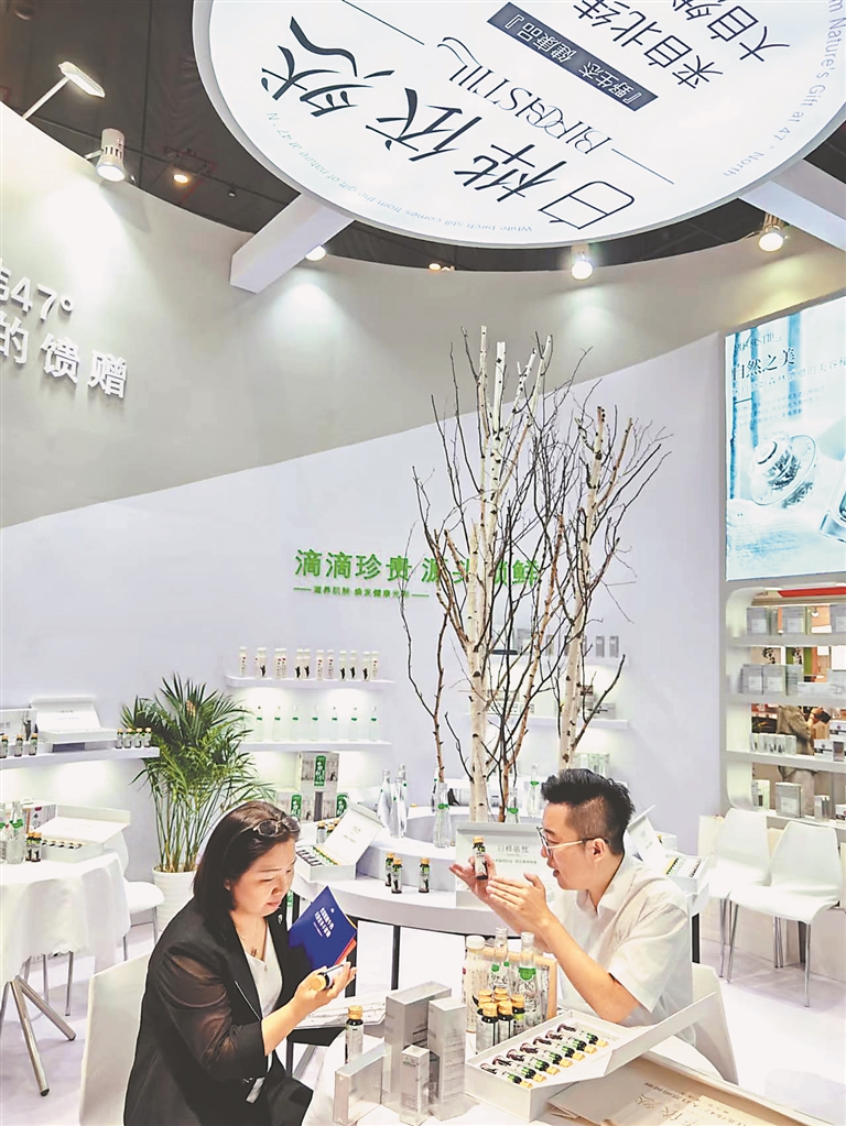 “產(chǎn)品所用的白樺汁原料源自鐵力市,這里處在北緯47°小興安嶺的黑土地上?!焙邶埥陼钥萍加邢薰究偨?jīng)理馬光西介紹,公司充分利用龍江“九珍十八品”資源,由雨曉集團(tuán)與清華大學(xué)深圳科研團(tuán)隊(duì)合作,運(yùn)用先進(jìn)技術(shù)開(kāi)發(fā)提煉出白樺汁精華,為消費(fèi)者不斷提供囗感獨(dú)特的綠色飲品、化妝品?,F(xiàn)在企業(yè)庫(kù)存清空,鐵力工廠(chǎng)正加班加點(diǎn)生產(chǎn)。本次展會(huì)的火爆出圈,讓企業(yè)對(duì)白樺汁系列產(chǎn)品走向世界市場(chǎng)更加充滿(mǎn)信心。