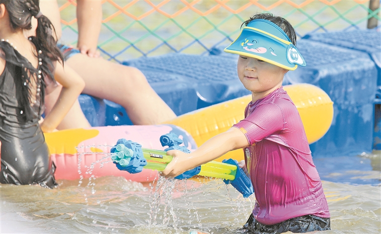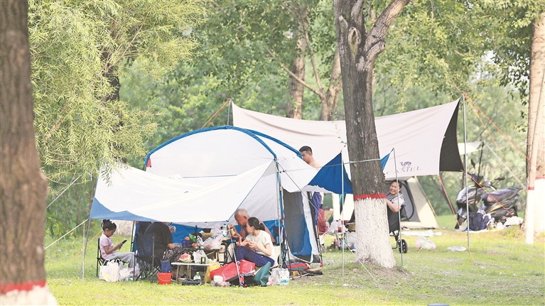 各個(gè)景區(qū)內(nèi),游客們撐起太陽傘,戴上遮陽帽,以抵御紫外線的照射。松花江畔的幾處浴場,人頭攢動(dòng),家長帶著孩子在這里戲水納涼。江邊的綠蔭里,滿是露營的帳篷,市民吃著冰西瓜、喝著涼啤酒,愜意地避暑。本報(bào)記者 張澍攝
