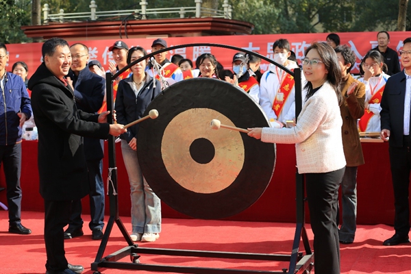 隨后黑龍江省希望工程捐助中心杜晶主任和哈師大附中校長(zhǎng)劉振成一同鳴響大鑼?zhuān)屄曧憦卣麄€(gè)凱德廣場(chǎng),劉校長(zhǎng)宣布義賣(mài)會(huì)正式開(kāi)始。