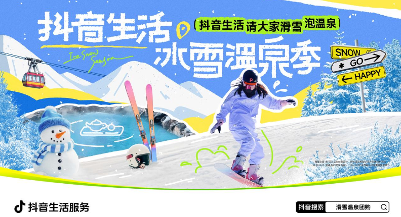 隨著全國各地降溫,“冰雪經(jīng)濟”逐漸升溫。10月22日至12月22日,抖音生活服務發(fā)起“抖音生活冰雪溫泉季”活動,重點圍繞哈爾濱、長春、沈陽等城市,聯(lián)動政府、明星達人、商家線上推介當?shù)囟疚穆觅Y源,聚合物美價優(yōu)的冬季吃喝玩樂商品;線下打造雪人城市生活圈、抖音生活市集等,吸引用戶出游打卡,激發(fā)冰雪消費熱情,助力冰雪城市出圈。