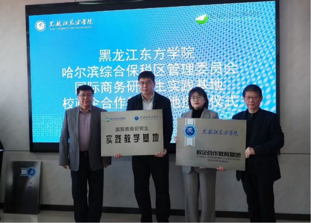 黑龍江經濟網訊(記者李凌雪)11月20日,哈爾濱綜合保稅區(qū)與黑龍江東方學院舉行校政企產教研發(fā)展戰(zhàn)略合作協(xié)議簽約授牌儀式。哈爾濱綜合保稅區(qū)副主任張旭與黑龍江東方學院副校長程延江共同為國際商務研究生實踐基地、校企合作教育基地授牌并簽署合作協(xié)議。