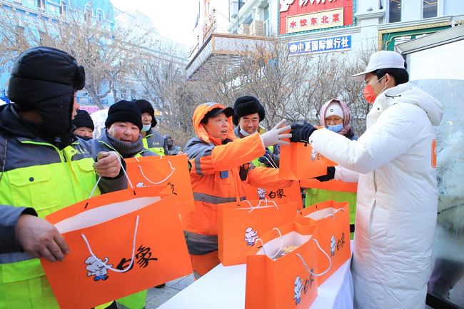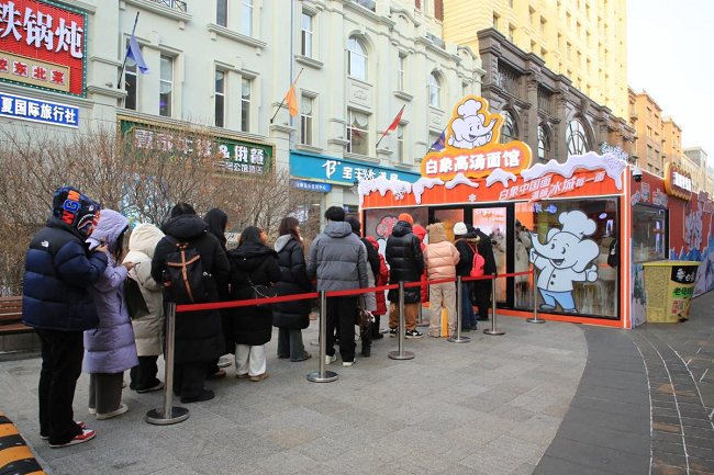 白象中國(guó)面,溫暖冰城每一面。去年12月31日至今年1月5日,白象高湯面館空降哈爾濱中央大街,用一碗高湯面開啟暖心跨年新體驗(yàn)。期間,巨型白象創(chuàng)意雪雕“對(duì)象”火熱出圈,多重互動(dòng)玩法和試吃活動(dòng)吸引大量游客打卡嗨玩,為冰城游客和廣大消費(fèi)者獻(xiàn)上一場(chǎng)別開生面的冰雪盛宴。